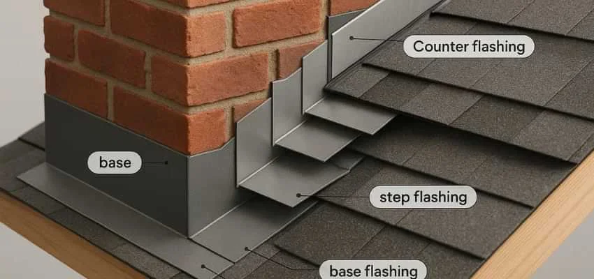 Step flashing tucks under each shingle course along the chimney sides. Counterflashing locks into mortar joints and overlaps those steps. In Spyglass Hill Estates, Keller the overlap must be precise to block wind-driven rain. We avoid shortcuts like exposed face-nailing that can loosen and leak later.